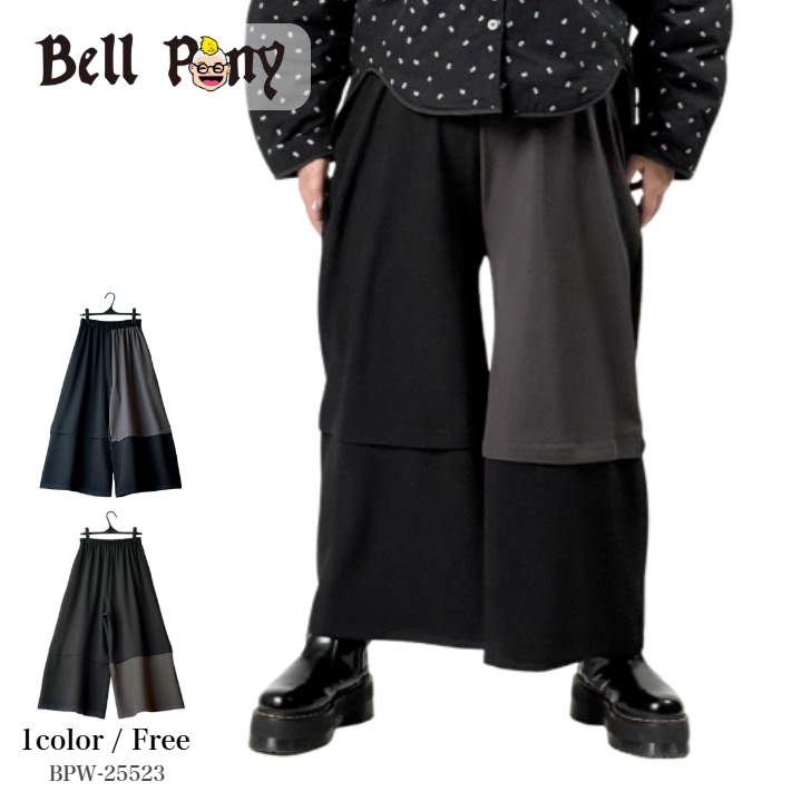 アシンメトリー 切り替え バイカラー ワイドパンツ