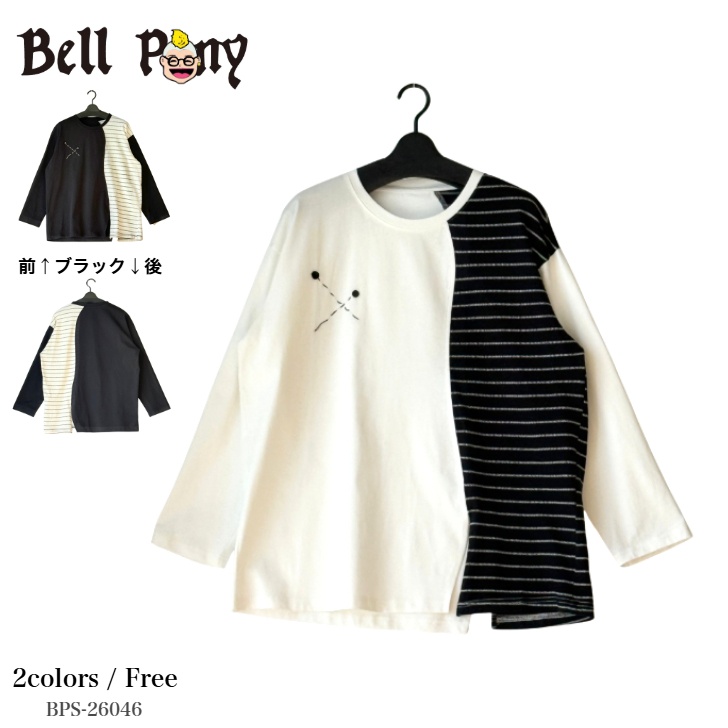 アシンメトリー配色切替 ロングTシャツ