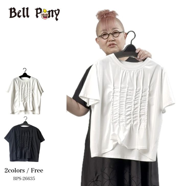 無地×水玉ドット 異素材切替え ビッグTシャツ