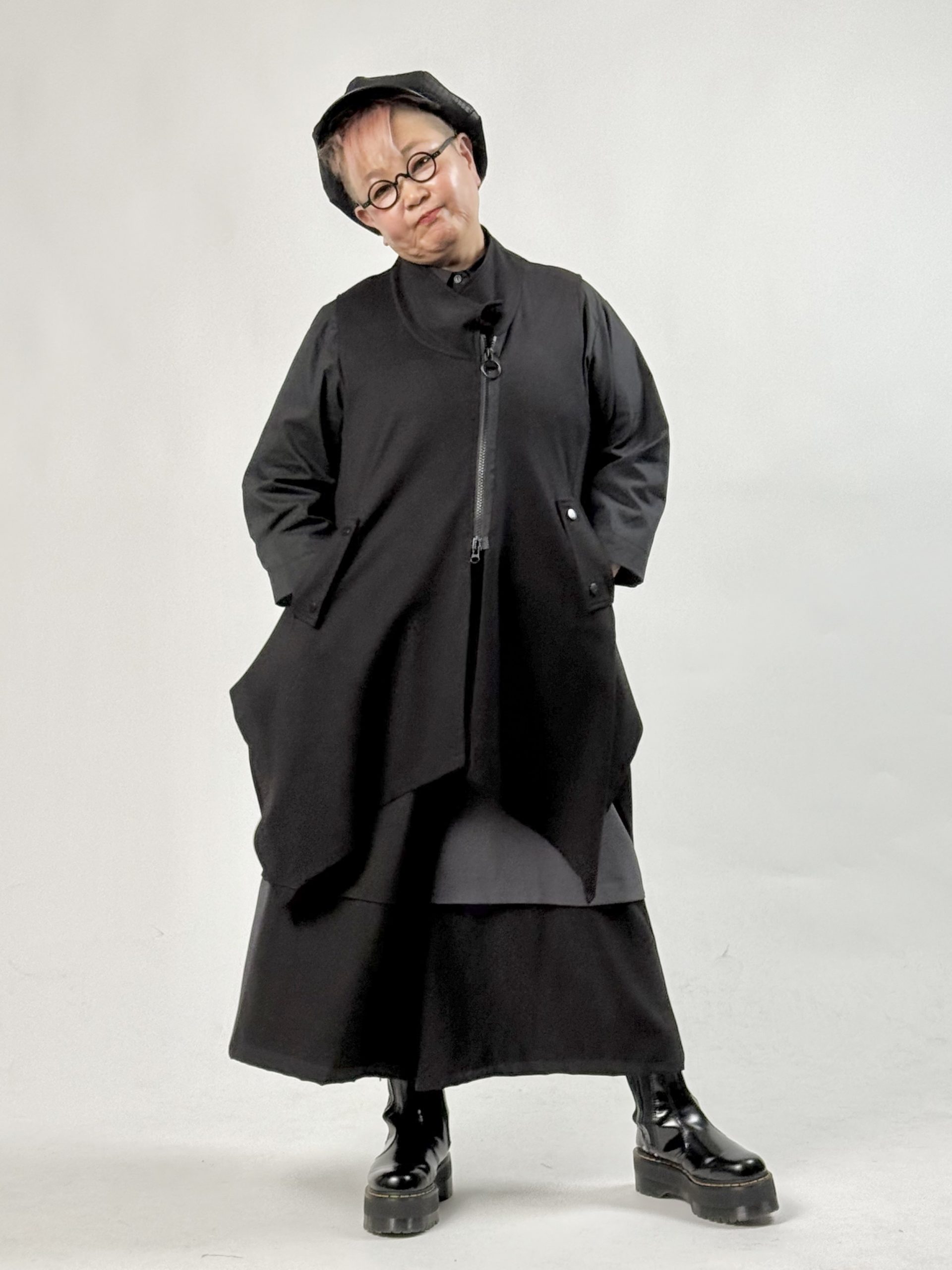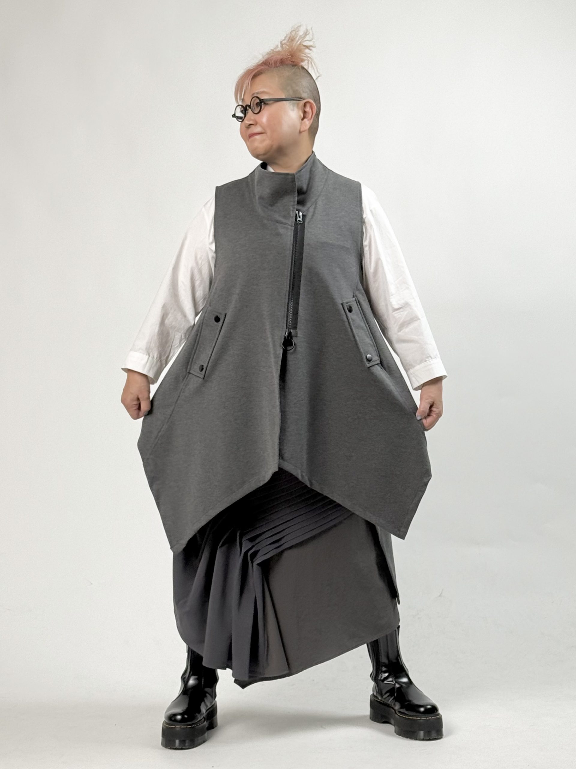 異素材切替え V首デザイン ドルマンスリーブ ブラウス